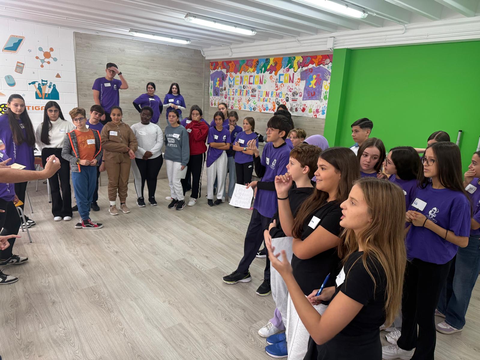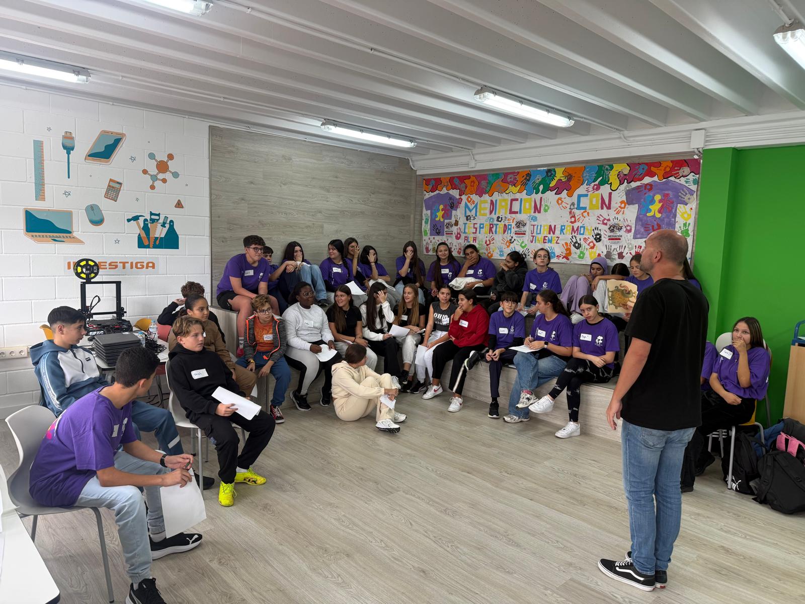 La jornada fue especialmente productiva gracias al valioso apoyo y la experiencia compartida por el IES Portada Alta. Queremos expresar nuestro agradecimiento a Alberto y Pilar, responsables de la mediación intercentros, y a su fantástico equipo de alumnado mediador y formador por la cesión de conocimientos y las dinámicas que impulsaron.