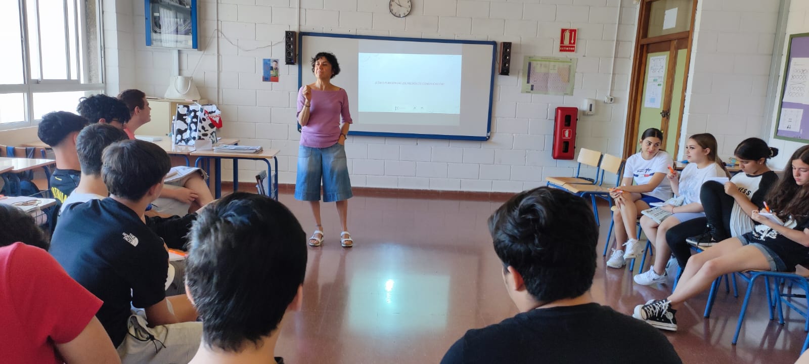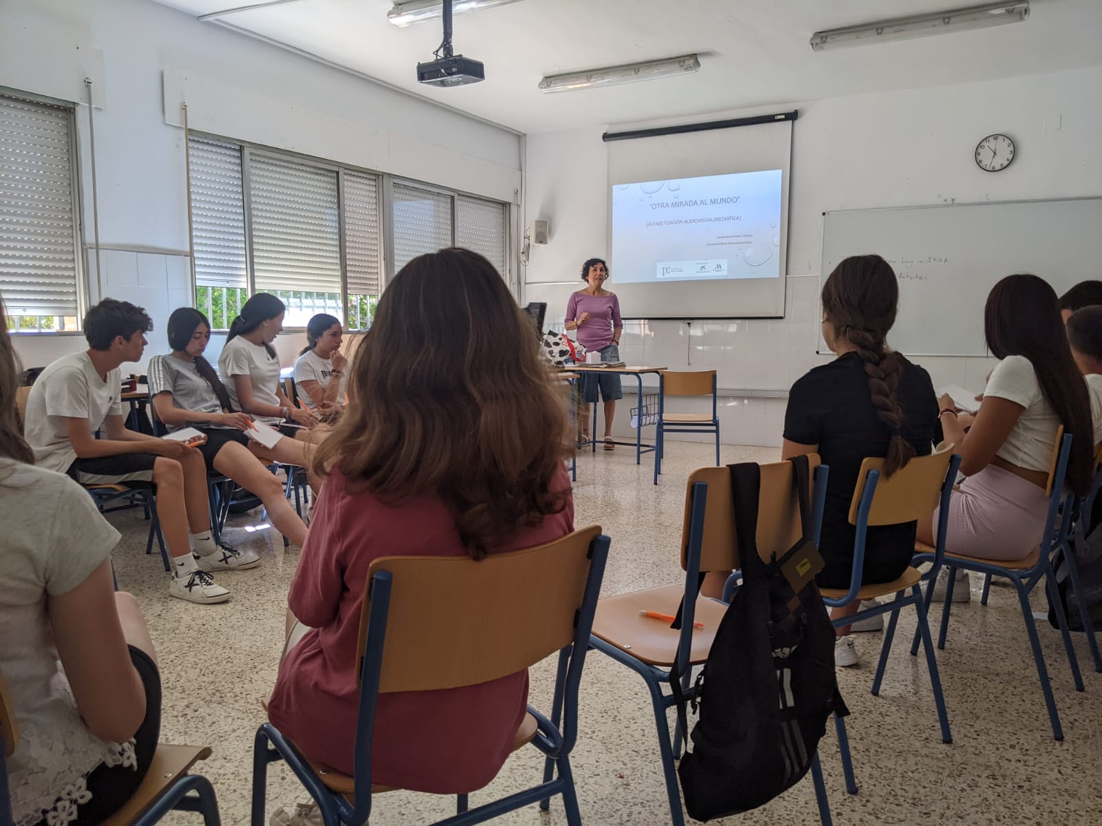 Inmaculada Peláez, periodista, dentro del programa la prensa en mi mochila, ha trabajado con el alumnado del centro, dentro de la Semana Cultural, la visión crítica y consciente de la información que nos llega a raudales a través de medios audiovisuales. Se trata de aprender a mirar más allá de simplemente dejarse envolver por imágenes. Y también a partir de ahí, aprender a usar los medios para expresar aquello que somos.